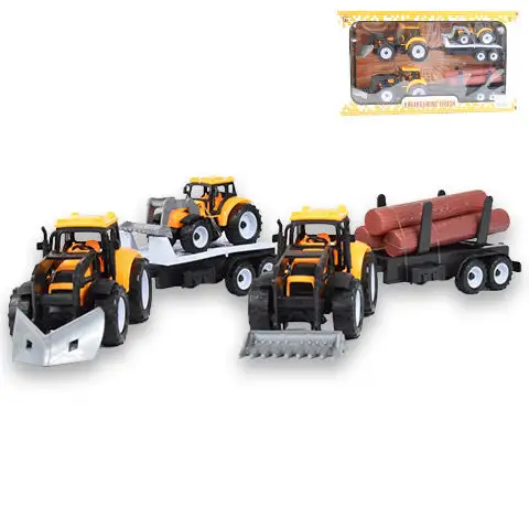 Inženýrský nákladní automobil: Dvoudílná sada pracovních strojů s dřevěným transportérem a traktorem s přívěsemInženýrský nákladní automobil: Dvoudílná sada pracovních strojů s dřevěným transportérem a traktorem s přívěsem