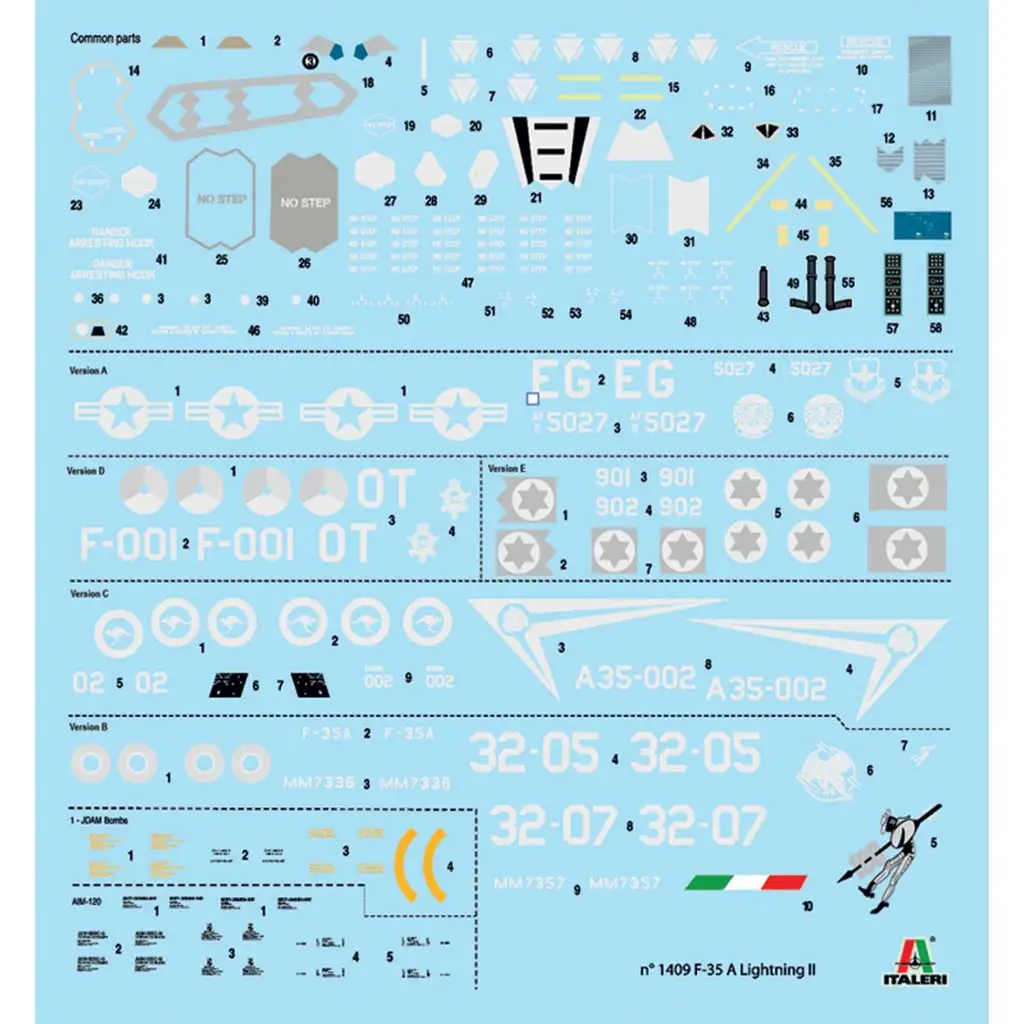 Model F-35A Lightning II od Italeri v měřítku 1:72 věrně reprodukuje tvary a detaily skutečného letounu ve vynikající kvalitě. Sada byla navržena s důrazem na nejmenší detaily trupu, křídel a výzbroje, aby model poskytoval realistický vzhled. Obsahuje také podrobné obtisky, které umožňují zobrazení označení letectva různých zemí. Přesné lícování dílů usnadňuje montáž, což z něj činí vynikající volbu jak pro začátečníky, tak pro pokročilé modeláře.