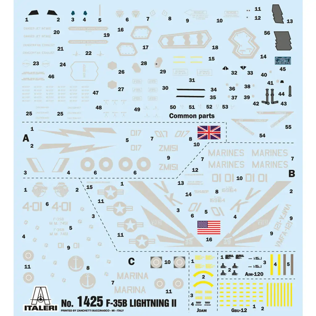 Tento prémiový model Italeri v měřítku 1:72 nabízí detailní zpracování a přesné lícování. Sada obsahuje prvky jedinečného STOVL mechanismu F-35B, takže model lze postavit i během vertikálního přistání. Realistické oddělení panelů a jemně zpracovaná výzbroj činí konečný výsledek ještě realističtějším. Sada obsahuje různé sady obtisků, které umožňují stavbu letounů různých národů.