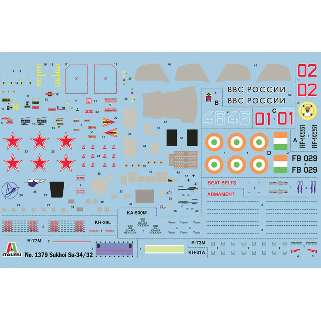 Tento model Italeri v měřítku 1:72 s mimořádnou detailností zobrazuje moderní a agresivní vzhled Su-34. Model je dlouhý 32,4 cm, má přesně zpracované panelové linie, detailní podvozek a možnosti výzbroje. Sada nabízí různé možnosti obtisků, takže lze postavit různé ruské a exportní verze. Pečlivě zpracované plastové díly a realistický design činí tento model vynikající volbou pro každého leteckého nadšence a modeláře.