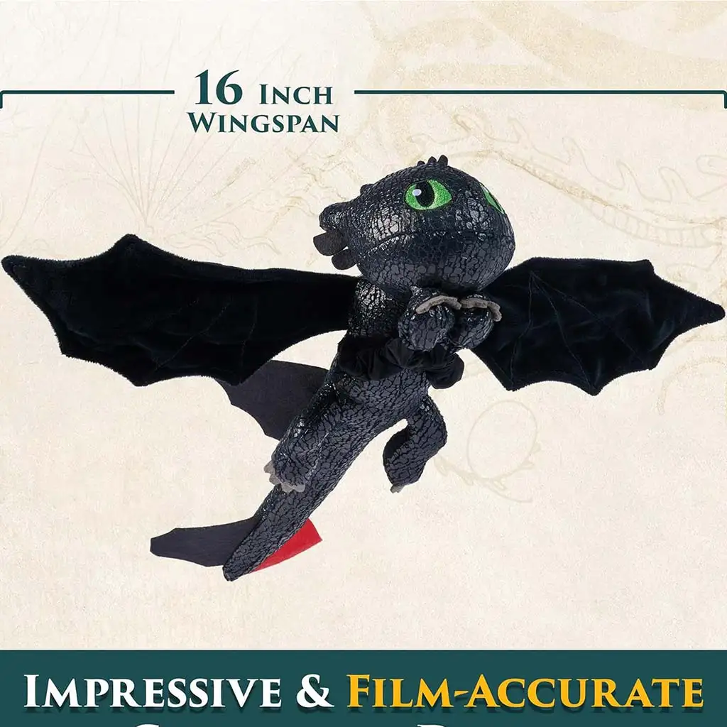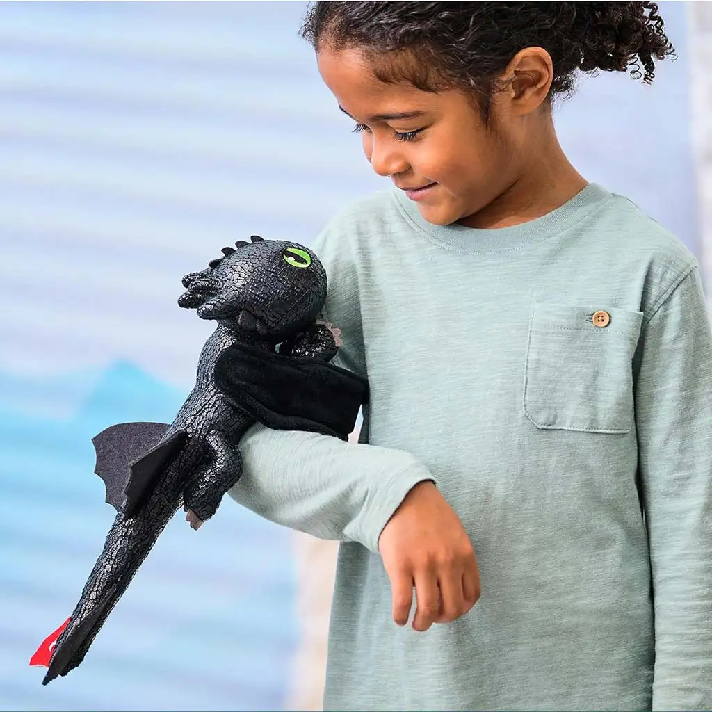 Vznes se do světa fantazie s tím nejroztomilejším a nejvíce objímatelným drakem – Bezzubkou, kterého teď můžeš nosit všude na své ruce! Oblíbený noční běs ze světa filmu Jak vycvičit draka se vrací v plyšové podobě v unikátním provedení: dá se připnout na ruku, takže děti budou mít pocit, jako by měly vlastního draka, kterého si mohou vzít kamkoli s sebou. Tato 30cm plyšová hračka z měkkého materiálu není určena jen k mazlení, ale také nabízí interaktivní herní zážitek, protože když roztáhne křídla, vypadá, jako by se chystal vzlétnout.