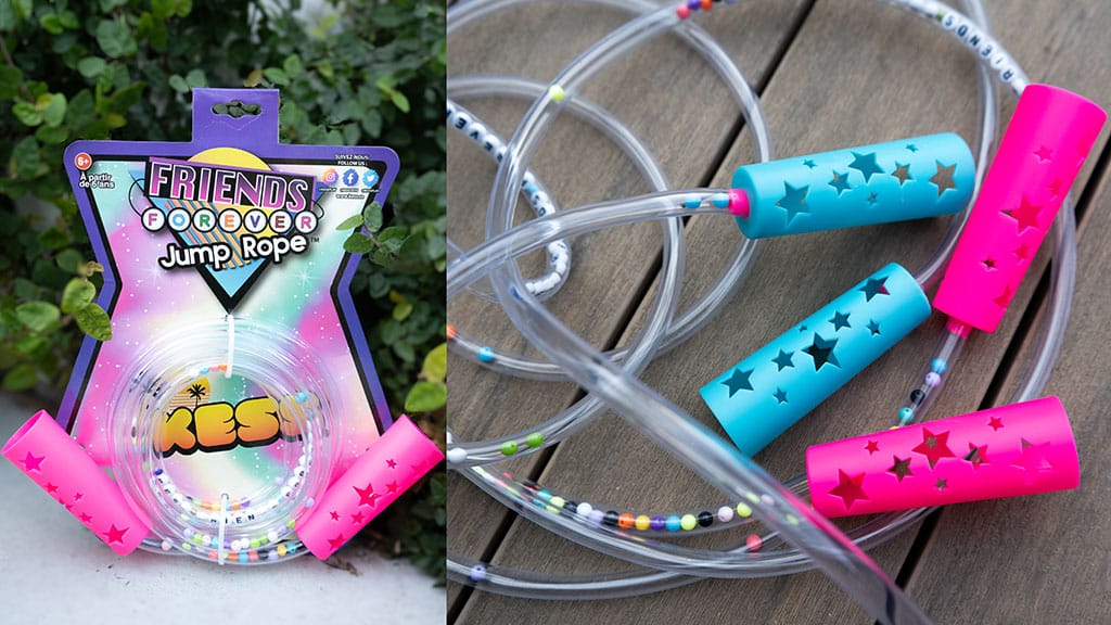 Děti mohou aktivně trávit čas se svými přáteli, zatímco si hrají s touto dvoudílnou sadou skákacích lan. Každé skákací lano má růžovou nebo modrou rukojeť a lano je naplněno korálky, aby vypadalo jako náramek přátelství. Středové korálky tvoří nápis Best Friends Forever (Navždy přátelé). Je to klasická hra, která dostala módní aktualizaci, takže děti rády sdílejí tyto lana se svými přáteli a vyzývají se navzájem k různým hrám, například kdo dokáže vícekrát za sebou skákat, nebo kdo dokáže skákat dozadu s lanem.