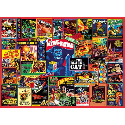 Thriller je pravděpodobně jednou z nejoblíbenějších filmových kategorií, ve které se dodnes rodí památná díla a má mnoho fanoušků. Tato tisícikusová skládačka je pro ně skvělou volbou, protože zobrazuje montáž z plakátů klasických thrillerových filmů, jako je King Kong, Neviditelný muž nebo Ptáci. Dílky skládačky Clementoni High Quality Collection lze snadno sestavit a dokonale se hodí, zatímco díky bezkompromisním, vynikajícím tiskovým postupům je hotový obrázek dechberoucě ostrý a plný živých barev.