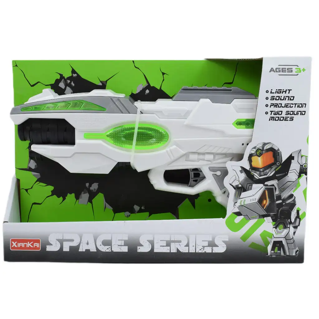 Kosmická série: Vesmírná zbraň v zelenobílé barvě se světlem a zvukem 25cm
