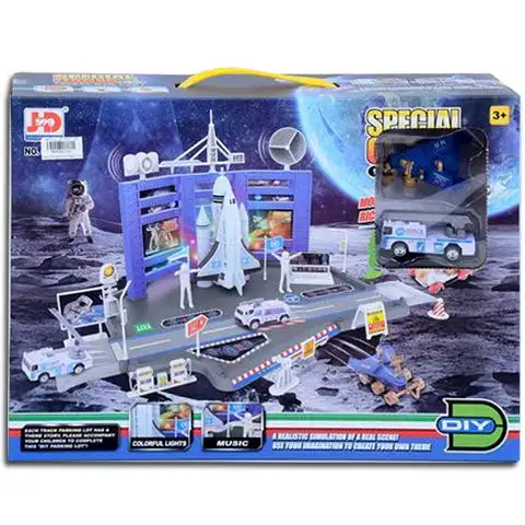 Zbývá jen několik sekund do startu a kosmická loď již míří na daleký Měsíc! Děti nyní mohou prožít zážitek z kosmické cesty díky super herní sadě, která obsahuje vše potřebné pro zajímavou hru. Centrální dráhová sada kromě kosmické lodi obsahuje také dvě malá vozidla, takže může přepravovat astronauty na místo startu nebo mohou prozkoumávat povrch Měsíce.