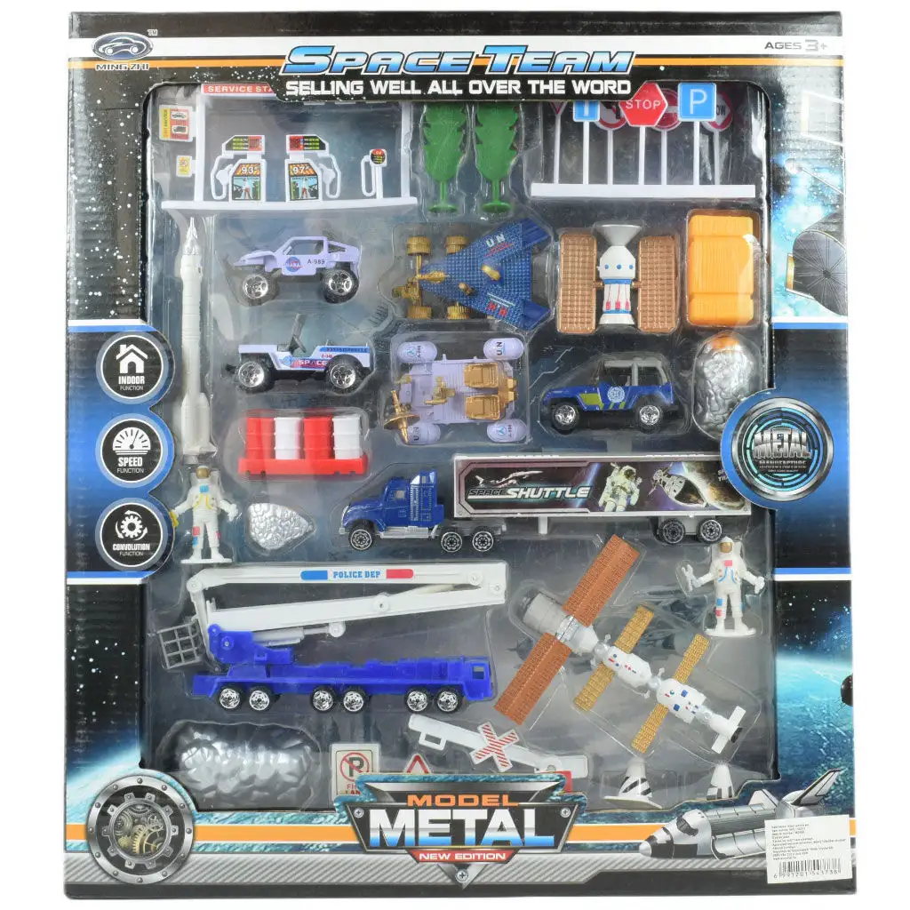 Součástí hračkové sady jsou různé satelity, vesmírné lodě a vesmírné stanice, které vašemu synovi umožní cítit se, jako by řídil skutečnou vesmírnou misi. Kromě toho obsahuje kousky meteoritů, figurky astronautů a dokonce i čerpací stanici, kde lze vozidla tankovat během vesmírné cesty. Tyto doplňky jsou věrnými kopiemi detailů skutečné vesmírné technologie, což hru činí ještě vzrušující a poučnou.