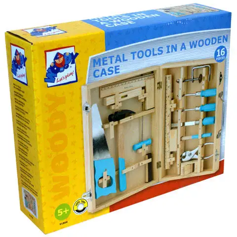 Kovové nářadí v dřevěné krabici, 16 kusů - Woodyland