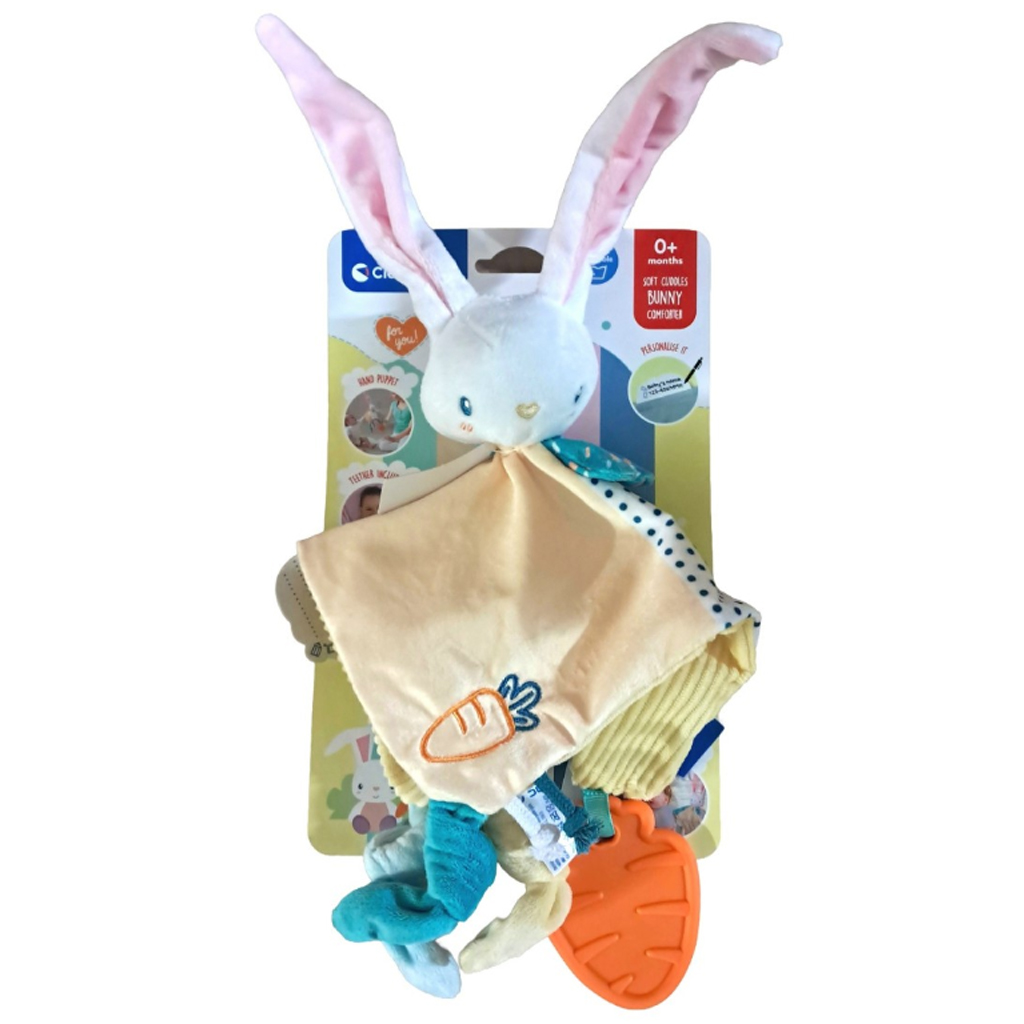 Clementoni Baby usínací dečka s králíčkem je perfektní volbou, pokud chcete své miminko uklidnit a pomoci mu cítit se bezpečně již od novorozeneckého věku. Měkký, příjemný na dotek materiál jemně přiléhá k pokožce miminka, zatímco roztomilá králíčková postavička se stává přátelským společníkem během dne i při usínání. Různé textury a kousátko pomáhají rozvoji smyslů a mohou zmírnit nepříjemnosti spojené s prořezáváním zoubků. Díky lehkému provedení ho dítě snadno uchopí a vezme si ho s sebou kamkoli. Ideální pro spánek, uklidnění nebo i na cesty.