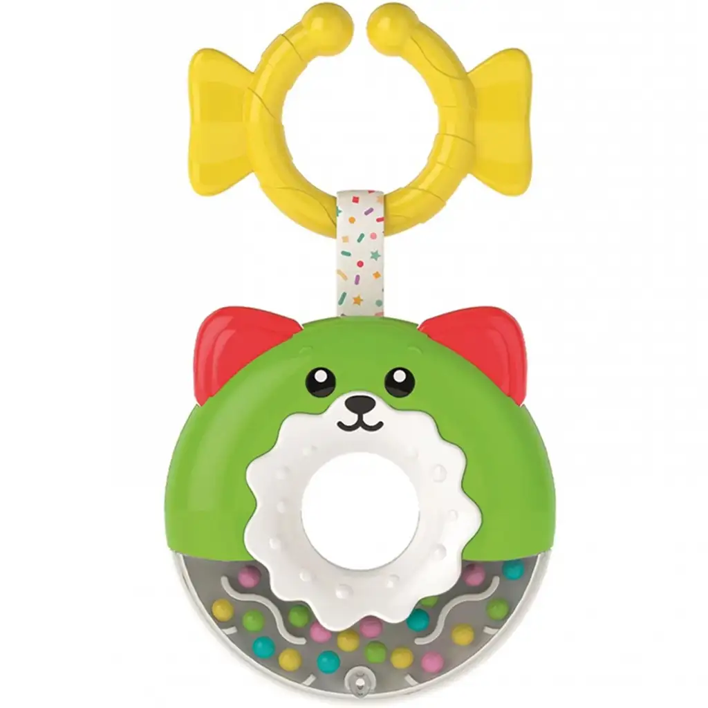 Tato hračka je ideální společník v raných fázích vývoje: podporuje rozvoj sluchu, zraku, hmatu a jemné motoriky. Navíc roztomilý obličej zvířátka na vršku donutu dělá tuto malou hračku do ručičky ještě sympatičtější.