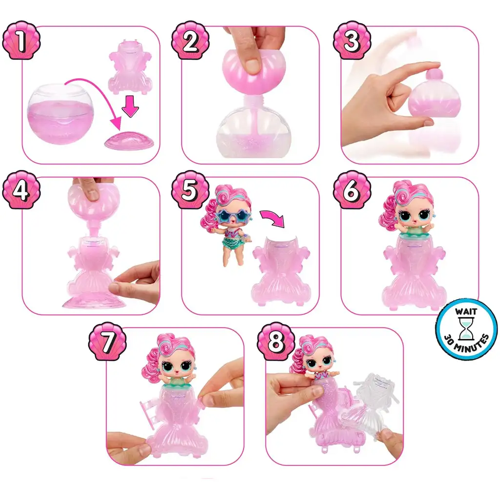 L.O.L. Surprise Překvapení mořská panna drobnosti poskytují opravdu kouzelný zážitek pro každého malého fanouška! Tyto speciální mini mořské panny mají ploutve měnící barvu a nabízejí jedinečný zážitek „udělej si sám“, protože si můžete sami vytvořit třpytivý ocas mořské panny.
