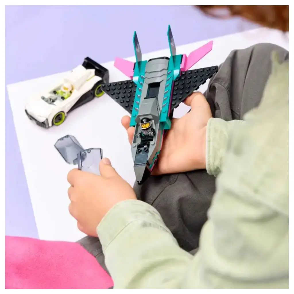 Tato dvojitá stavebnice vozidel LEGO® City Letadlo vs. auto (60489) obsahuje elegantní superauto a supersonické letadlo pro fantazijní závody. Hračkové letadlo má zadní křídla, dvojité svislé ocasní ploutve a stabilizátory. Děti mohou pohybem páky aktivovat přídavné spalování tryskového letadla a otevřít kabinu superauta, aby si prohlédly detailně propracovaný interiér se závodní sedačkou. Stačí přidat minifigurky pilota a závodníka a užívat si hodiny zábavných závodů. Udělejte každý den výjimečným s touto stavebnicí letadla a auta – skvělý dárek pro chlapce, dívky a všechny děti od 6 let, kteří milují závodní auta a modely letadel. Rozšiřte tuto sadu o další sady z nabídky LEGO City (prodávány samostatně) pro ještě více městských dobrodružství! Udělejte si tuto LEGO stavebnici sportovního auta a tryskového letadla ještě zábavnější s aplikací LEGO Builder, kde si děti mohou modely zvětšovat a otáčet ve 3D a sledovat postup stavby. Sada obsahuje 259 dílků.