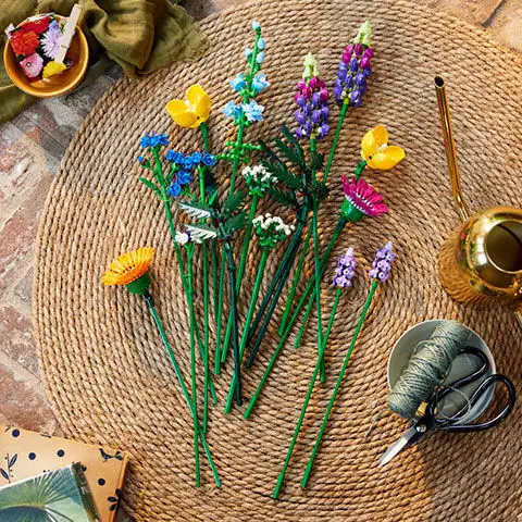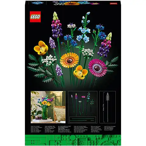 Tento vzrušující kytice z LEGO dílků obsahuje 8 druhů divokých květin s nastavitelnými stonky. Malí květináři a milovníci květin mohou strávit hodiny stavěním a poznáváním květin, které byly inspirovány modřenci, levandulí, velšskými máky, lesními anémonami, kapradinami, gerberami, kosatci a liliemi. Jakmile postavíš LEGO květiny, vlož je do své oblíbené vázy, aby se staly opravdu ohromující dekorací domova, která bude šířit radost kdekoliv bude vystavena.