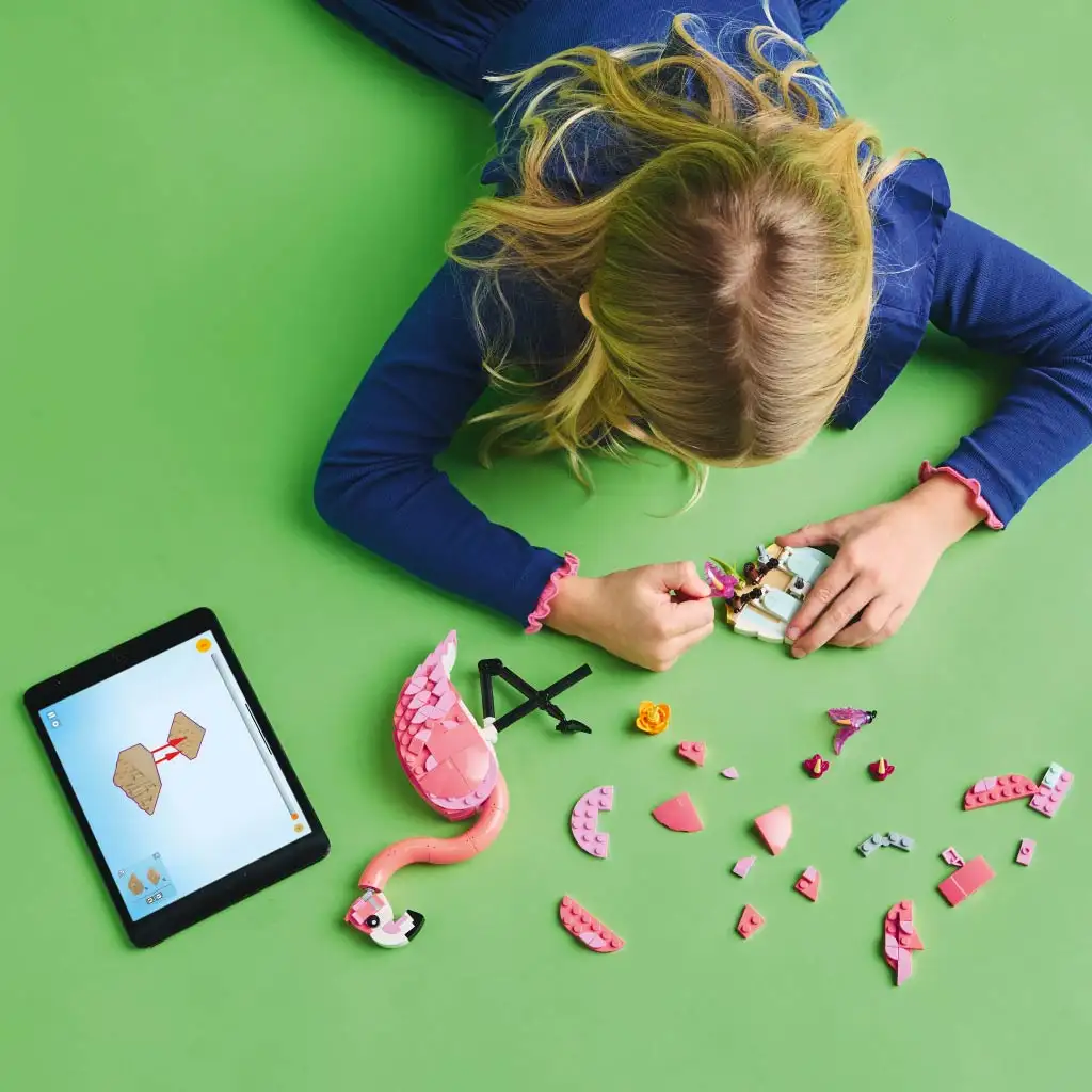 • Rozměry – Tato 288dílná přestavitelná LEGO® stavebnice obsahuje růžového plameňáka vysokého 23 cm