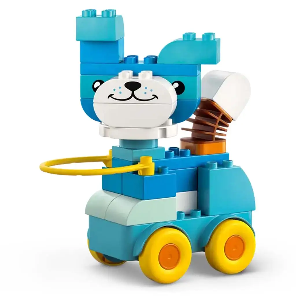 • Stavebnice pro nekonečně dlouhou fantazijní hru – Vneste barvy a neomezenou kreativitu do her malých dětí se stavebnicí LEGO® DUPLO® Městská dobrodružství 3 v 1 Zvířata na kolečkách!