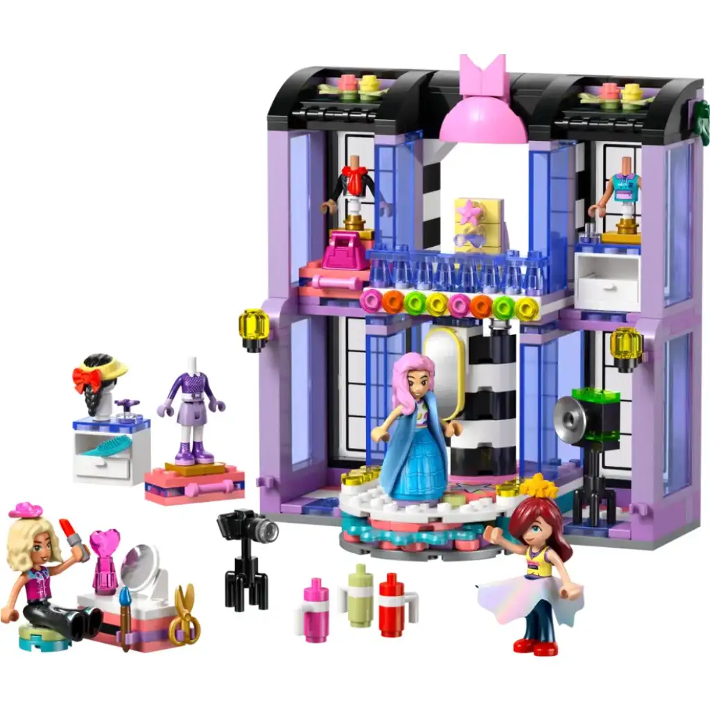 • 3 POSTAVY LEGO® FRIENDS – Tato módní oblékací hra obsahuje figurky Paisley, Liann a Novu, které lze oblékat u toaletního stolku a předvést jejich outfity na otočné plošině