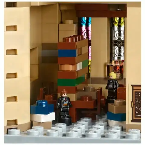 • V hradu Bradavice najdete Velkou síň s malovanými skleněnými okny, prapory domů, lavice, stoly, ohnivé pochodně a pohyblivé schodiště, učebnu lektvarů s policemi plnými nádob, učebnu Obrany proti černé magii s různými lektvary, gramofonem a skříní obsahující boggarta, komnatu s šachovou hrou a šachovými figurkami, Místnost nejvyšší potřeby s různými prvky, jako je Ohnivý pohár a skříňka na zmizení. Dále sada obsahuje Komnatu tajemství s Baziliškem a deníkem Toma Riddla, skrytou místnost s ďáblí pastí, klubovnu Nebelvíru s krbem a sedačkami, kancelář profesorky Umbridgeové s stolem, židlí a růžovým nábytkem, knihovnu s knihovními regály a stoly, a kancelář profesora Brumbála s vchodem zdobeným sochou fénixe a Mysličkou.