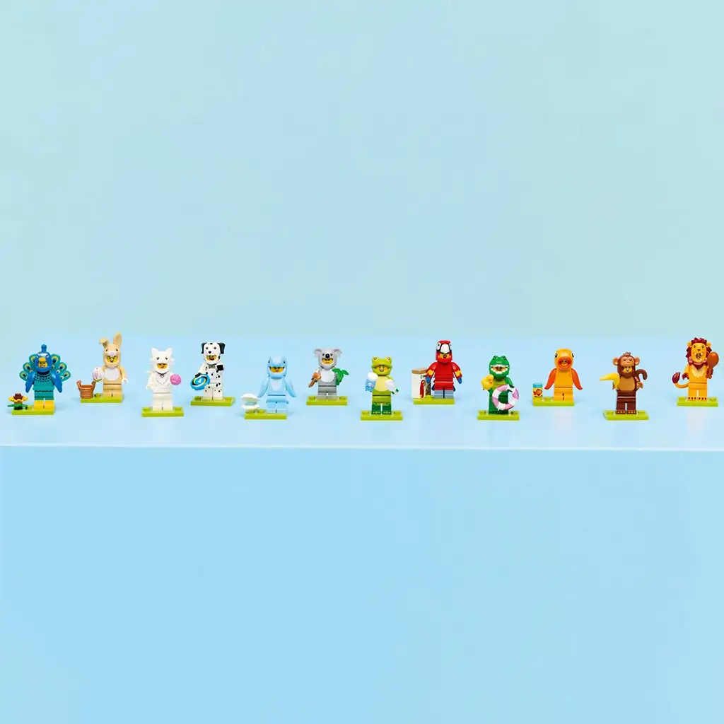 Dívky a chlapci od 5 let si mohou přehrávat zábavné příběhy s jednou z 12 sběratelských figurek, které se nacházejí v překvapivých balíčcích LEGO® Minifigurky, Zvířata, 28. série (71051). Každý balíček obsahuje 1 překvapivou LEGO minifigurku a celkem lze nasbírat 12 herních figurek, mezi nimi papouška, lva, žábu, krokodýla, dalmatina, zlatou rybku, roztomilého králíčka, páva, chlupatou kočku, koalu, delfína a opici převlečenou za zvíře. Každá z těchto 12 minifigurek je v uzavřené krabičce a součástí je alespoň 1 doplněk. Tyto detailně propracované a roztomilé zvířecí figurky mohou rozšířit stávající sbírku, mohou být vystaveny, nebo také použity k vytváření zábavných příběhů. Tento malý dárek je zábavnou odměnou pro děti, které milují zvířata a přírodu, a inspiruje je ke skvělému vyprávění příběhů a nespočtu hodin hraní, ať už samostatně nebo s kamarády.