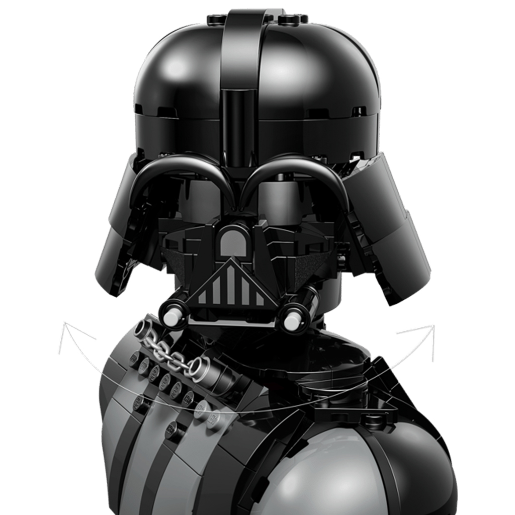 • PŘIPRAVENO K VYSTAVENÍ – Umísti svůj výtvor na sestavitelný stojan s jmenovkou vedle minifigurky LEGO® Star Wars™ Darth Vader a otáčej bustu na stojanu, abys ji mohl prohlédnout ze všech úhlů!