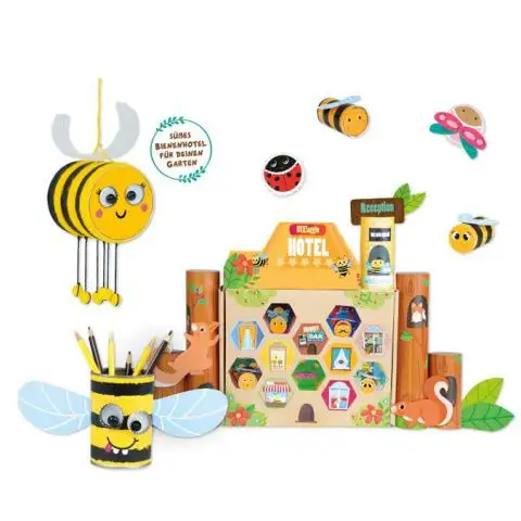 Určitě jsi už slyšel o důležitosti malých hmyzích v našem ekosystému. Je nezbytné, aby taková malá zvířata, jako jsou včelky, mohla bezpečně pracovat v přírodě, opylovat rostliny a vyrábět lahodný med. Tato speciální sada umožňuje vytvoření skutečného hmyzího hotelu, který pak může být využit v zahradě, stejně jako výrobu tužkovníku a figurky včelky, které mohou zdobit tvůj pokoj. Sada obsahuje potřebné materiály a podrobný návod, nicméně budeš potřebovat ještě pár věcí, které se obvykle najdou v každé domácnosti a jinak by skončily v koši. Děti si užijí každý okamžik tohoto vzrušujícího DIY projektu a pak mohou pozorovat, jak malé tvorečky osídlí budovu, kterou sami postavili.