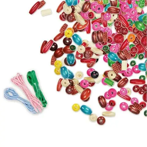 Tato speciální sada obsahující korálky obsahuje celkem 438 různě barevných, tvarovaných a velikostních korálků, s nimiž se může setkat vaše dítě a podle vlastní kreativity vytvářet různé šperky, dárkové předměty a klíčenky. Sada obsahuje materiály vyrobené ze 100% dřeva, které po použití můžete pečlivě zabalit zpět do plastového kontejneru.