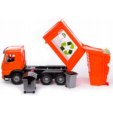 Mercedes-Benz selektivní odpadový vůz se do detailu podobá skutečnému a díky detailnímu zpracování funguje všechny důležité funkce, aby vaše dítě mohlo provádět sběr odpadu ve svém vlastním městě hraček. Součástí sady je také velký odpadkový koš, který lze snadno vyprázdnit pomocí zdvihacího mechanismu na zadní straně nákladního auta a poté převést na skládku. Certifikát LENA Spiel Gut slouží jako záruka vynikající kvality materiálů a odolné konstrukce, stejně jako z hlediska nejdůležitějšího hlediska pro děti, zážitku z hry.