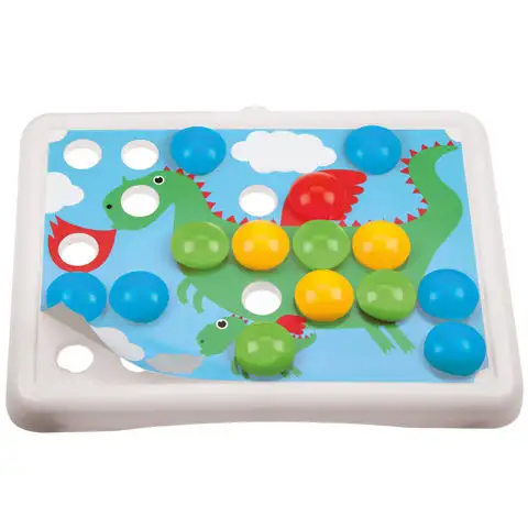 I ti nejmenší se mohou seznámit s kreativními kolíčky, které k nim přicházejí v různých barvách. Do desky mohou umístit sedm různých šablon, které mohou doplnit kolíčky podle barev. Vzrušující hra zabaví i malé děti, zatímco se seznámí s barvami. Který obrázek je tvůj oblíbený? Díky velkým kolíčkům bude hra bezpečná i pro nejmenší!