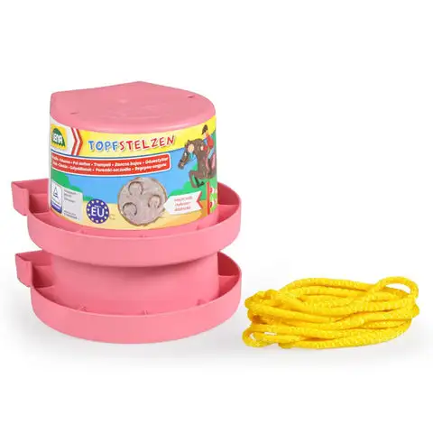 Můžete si pořídit skvělou zahradní hru pro své dítě, která poskytne skvělou zábavu, podnítí k pohybu a dokonce rozvíjí rovnováhu. Tato chůzová hra má růžovou barvu, takže se vaší dceři určitě bude líbit. Podstata hry spočívá v tom, že držíte za šňůry připevněné k plastovým kbelíkům, na které musíte šlápnout a takto kráčet z jedné nohy na druhou. Nejzábavnější na této hře je, že její spodní část zanechává za sebou otisky podkov, což hru dělá ještě vtipnější. Pořiďte si ji a podívejte se na další naše produkty v nabídce.