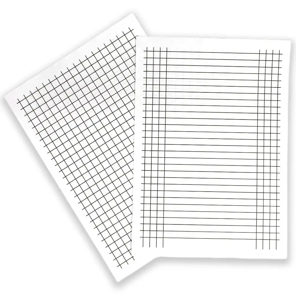 Celkově je balíček Průvodce praktickým a všestranným nástrojem pro psaní a kreslení, který pomáhá při vedení čar a organizaci. Silný černý tisk účinně vyniká na listech, což zajišťuje správné vedení a podporu pro uživatele.