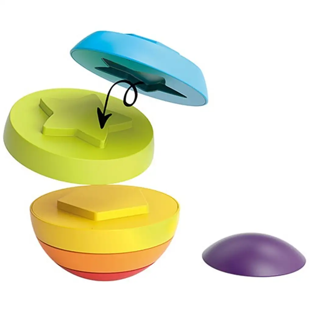 Koule se skládá ze šesti různobarevných vrstev, které je třeba umístit ve správném pořadí. Rozmanitost tvarů a spojovacích bodů činí hru vzrušující, zatímco děti se učí rozpoznávat různé barvy a tvary. Jasné barvy činí hru vizuálně přitažlivou, takže zaručeně upoutají pozornost malých rukou a očí.