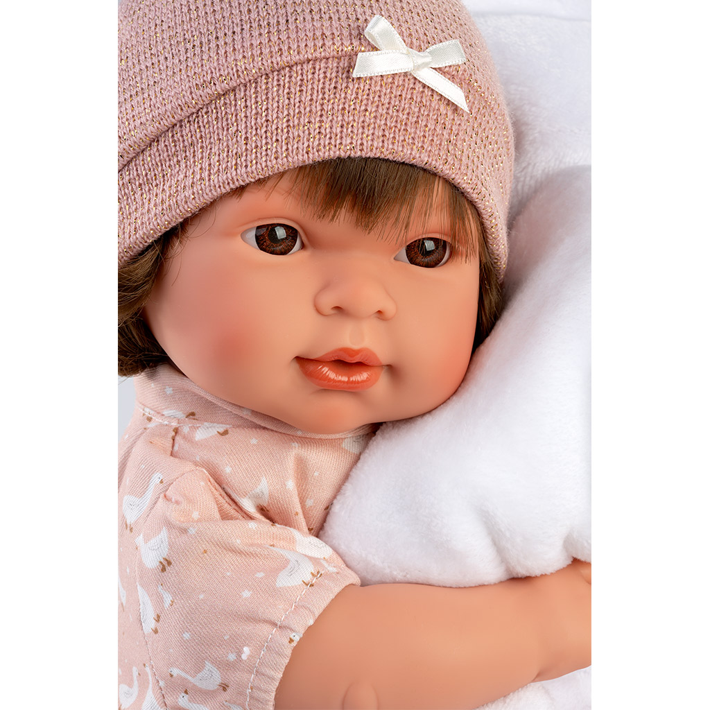Llorens: Carla, 42 cm velká pláčící panenka s dudlíkem a bílou dekou