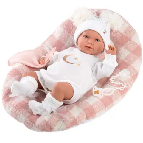 Llorens: Mimi Llorana 42cm pláčící novorozenec s kostkovanou postýlkou.Llorens: Mimi Llorana 42cm pláčící novorozenec s kostkovanou postýlkou.
