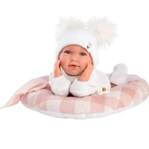Mimi Llorana, tato nádherná panenka, nyní přichází s unikátní kostkovanou postýlkou, ve které ji mohou děti uspat. Tato mimořádně detailní a životně věrná panenka přichází se dvoudílným oblečením a dudlíkem, a také obsahuje funkci pláče. Každá panenka Llorens je ručně vyráběna ve Španělsku a reprezentuje vynikající kvalitu. Panenka s funkcí má tělo z měkké látky, která skrývá zvukový modul, zatímco její končetiny a hlava jsou vyrobeny z měkkého plastu pro co největší životnost. Ruce a nohy panenek Llorens jsou pohyblivé, takže je lze umístit do sedící nebo ležící pozice. Panenka je dodávána v krásné dekorativní krabici a je spolu s ní odesílána.