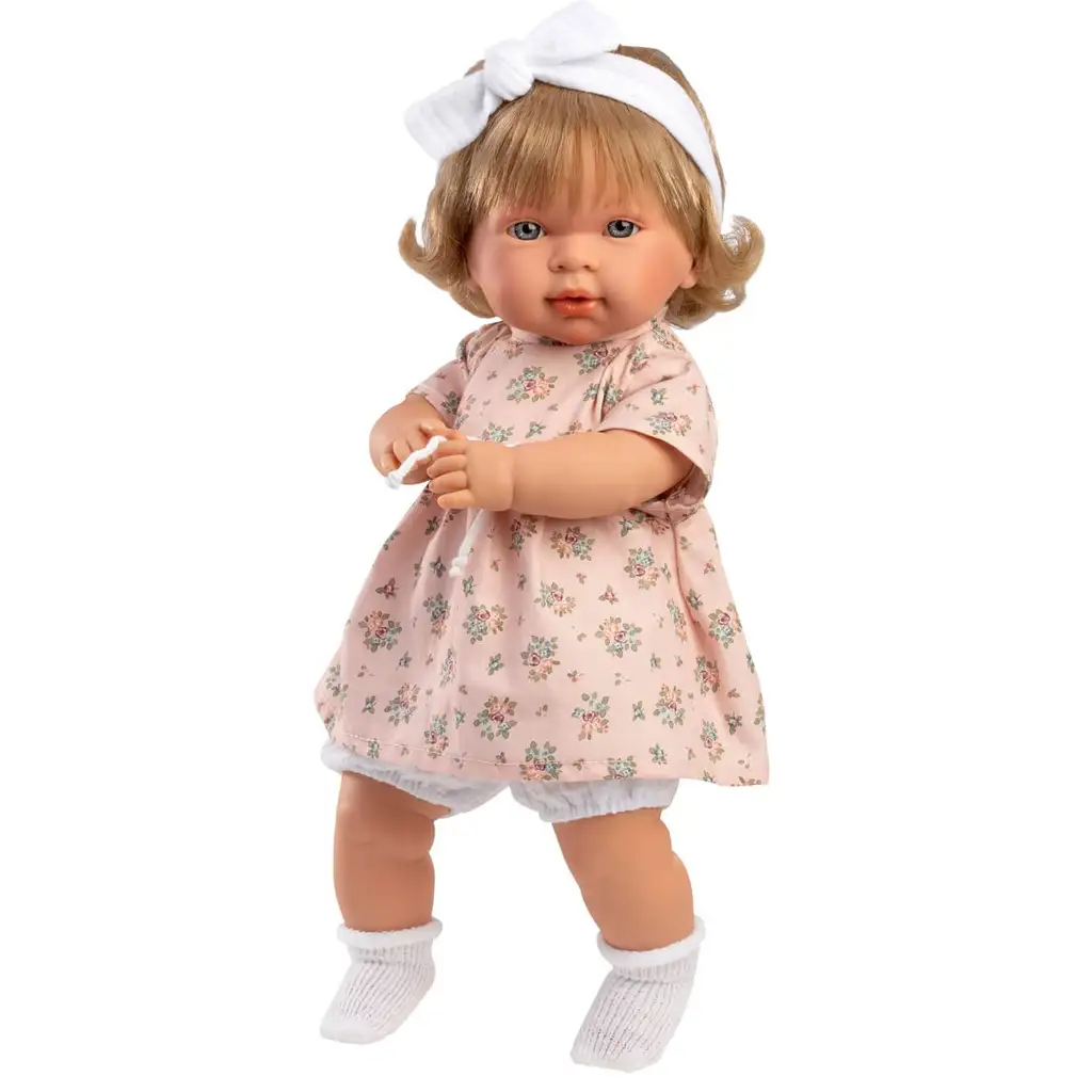 Llorens: Plačící panenka Carla 42 cm v květinových šatech s čelenkou