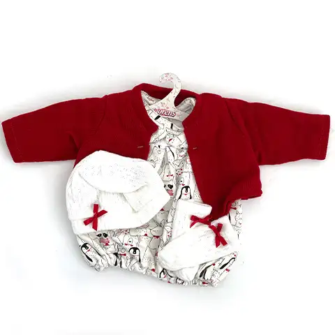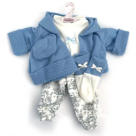 Skvělá volba pro rozšíření šatníku našich 43cm panenek Llorens je tato sada oblečení, ve které najdeme úžasnou kolekci. V síťovaném balení je roztomilý růžový kardigan, ke kterému patří pletená čepice a ponožky, a také bílé kalhoty zdobené roztomilými motivy medvídka a králíčka. Oblečení dokonale padne na naši 43cm panenku Llorens nebo na jiné panenky této velikosti podle vlastního výběru. Kvalitní výběr materiálů a nádherně propracované kousky oblečení jistě potěší každého.