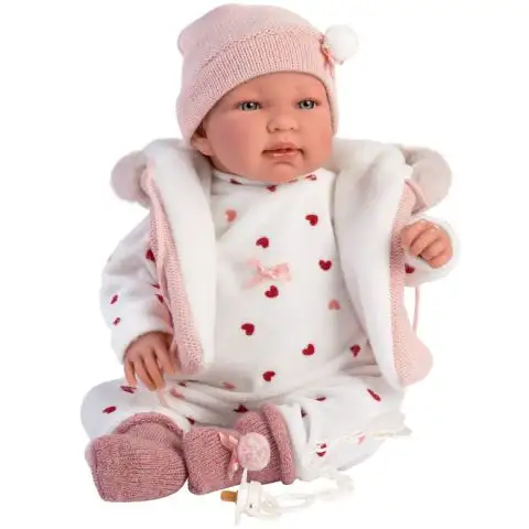 Llorens: Tina 44cm pláčící panenka v růžové vestě s kapucí