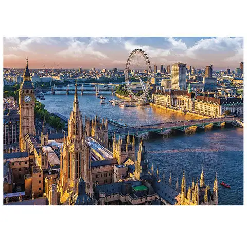 Bylo by pravděpodobně těžší vytvořit lepší obrázek anglického hlavního města, protože na jediném obrázku můžeme vidět Big Ben, velkou část Westminsterského paláce v Londýně a obrovské Ruské kolo London Eye. Kdokoli, kdo byl v Londýně alespoň jednou, určitě nebude litovat času stráveného zdobením stěny svého pokoje tímto úžasným obrázkem složeným z 1000 dílků. Dílky puzzle Trefl perfektně pasují a díky kompromisním, profesionálním tiskovým postupům je hotový obrázek dechberoucí, ostrý a barevný.