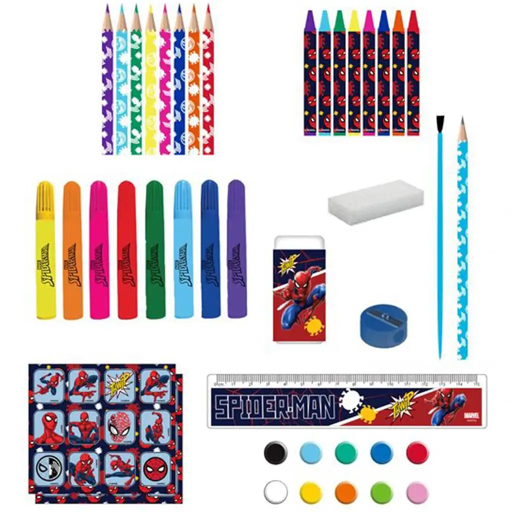 Uvolněte kreativitu svého dítěte s tímto superhrdinským, 42dílným kreativním setem s motivem Spider-Mana! Pokud je váš chlapec fanouškem Marvel vesmíru a rád kreslí, vybarvuje nebo maluje, tento set mu udělá skutečnou radost. V sadě najdete vše potřebné pro tvoření: barevné tužky, fixy, voskovky, vodové barvy, štětec, gumu, ořezávátko a dokonce i pravítko – vše ve stylovém pouzdře s motivem Spider-Mana!