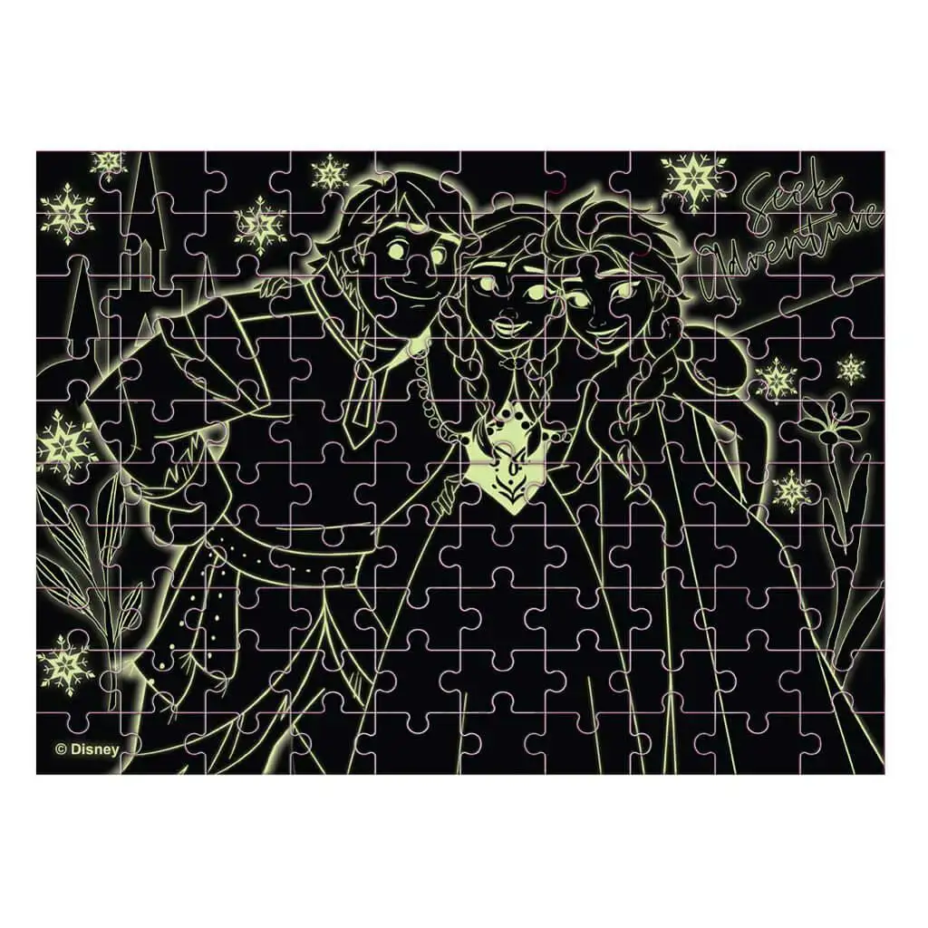 Tato skládačka Ledové království s 100 dílky v sobě neskrývá jen barevný obrázek, ale také ožívá ve tmě díky fosforeskujícím vzorům, takže poskytuje vzrušující zážitek jak ve dne, tak v noci.