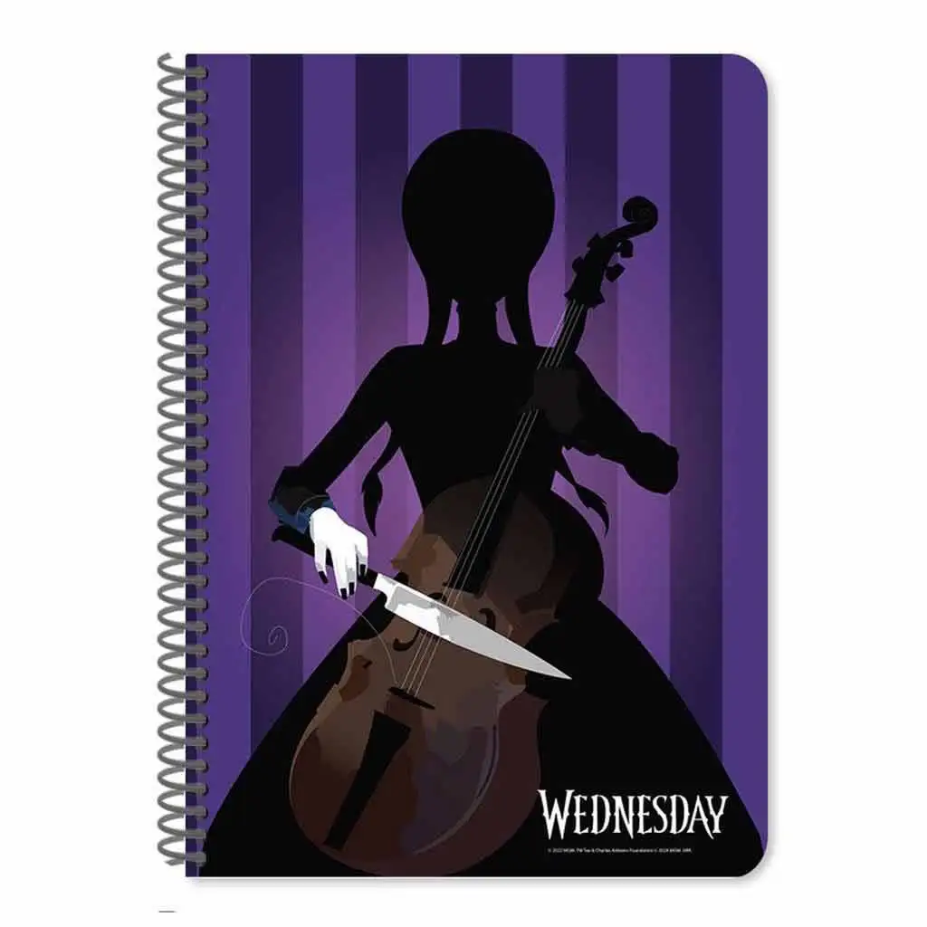 Očarujte si poznámky s tímto linkovaným spirálovým sešitem Luna Wednesday! Sešit formátu A4 s 60 stranami je k dispozici ve dvou speciálních designech, které evokují svět populární postavy Wednesday Addams. Na jednom obalu je Wednesday vidět při hře na housle, kde místo smyčce drží nůž, a na druhém obalu se objevuje její dobře známá silueta s copánky. Oba designy vyzařují temnou a mystickou atmosféru, což je perfektní volba pro každého fanouška Addamsovy rodiny.