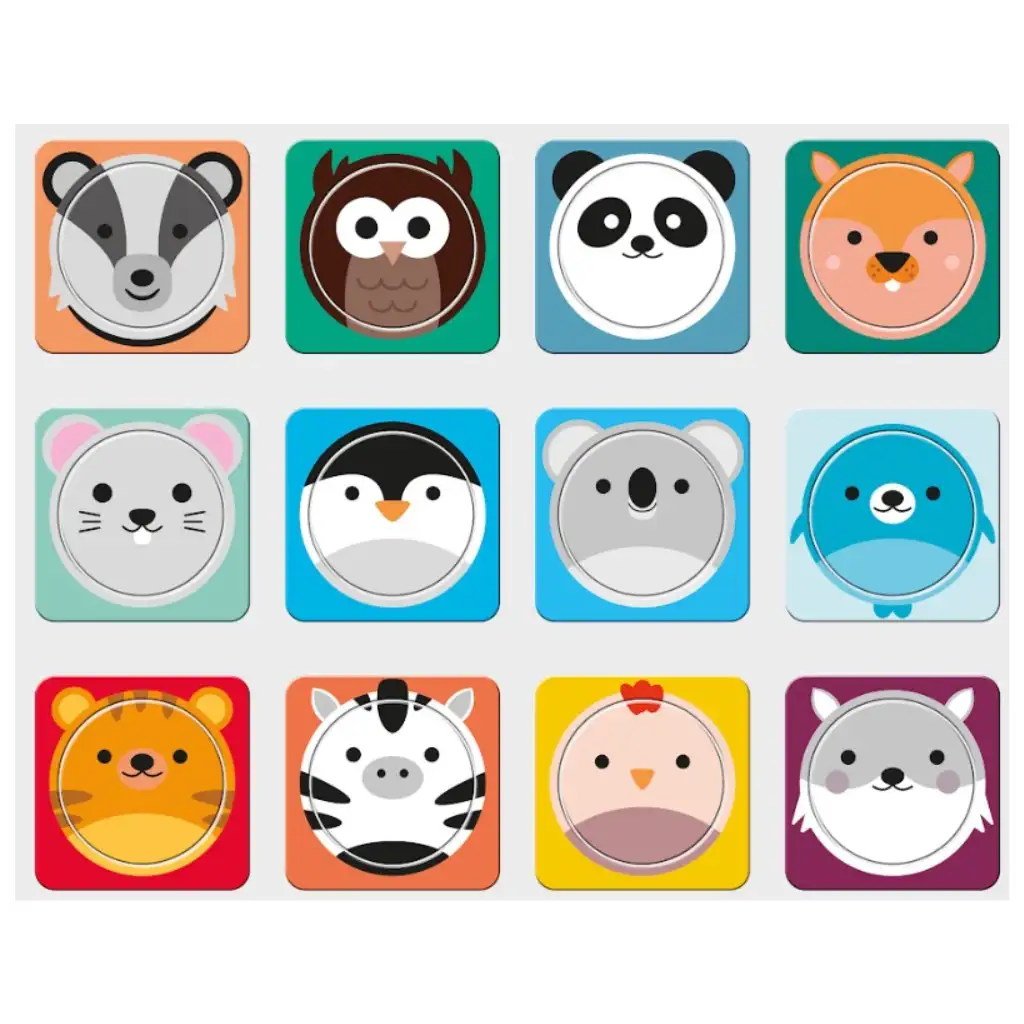Moje první párování – Zvířata je zábavná a rozvíjející hra pro nejmenší, která pomáhá poznávat svět zvířat. Cílem hry je, aby děti spárovaly roztomilé zvířecí hlavy s odpovídajícími barevnými kartami. Velké, snadno uchopitelné dílky jsou ideální pro malé ruce, takže je bezpečné je používat již od 12 měsíců.