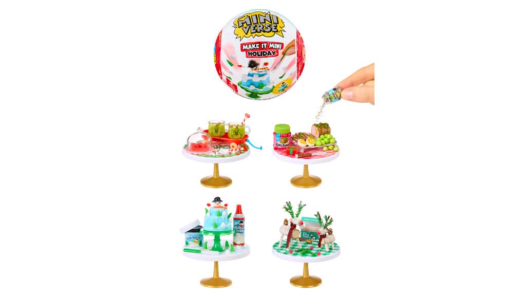 Nejnovějším členem Miniverse od MGA je série Make It Mini, která přináší oblíbené (nepravé) sváteční dobroty rodiny v miniaturní podobě! Každá kapsle Make It Mini Holiday obsahuje plastové ingredience, drobné nástroje a pryskyřici, takže si děti mohou vlastnoručně vytvořit malé repliky svátečních jídel. Tyto sběratelské kousky se stanou finálními a vystavitelnými (nebo je lze vložit i do domečku pro panenky), jakmile pryskyřice ztvrdne působením slunečního nebo UV světla. Série obsahuje čtyři různé miniatury: Roast Beef, Snowman Cake, Log Reindeer a The Grinch Dr. Seuss Hot Cocoa Pack. Pro děti je vzrušujícím překvapením, že až při otevření kapsle zjistí, které jídlo nebo nápoj si budou moci vyrobit. Tato kreativní hračka není jen zábavná, ale rozvíjí také zručnost a fantazii, zatímco se děti mohou ponořit do sváteční atmosféry.