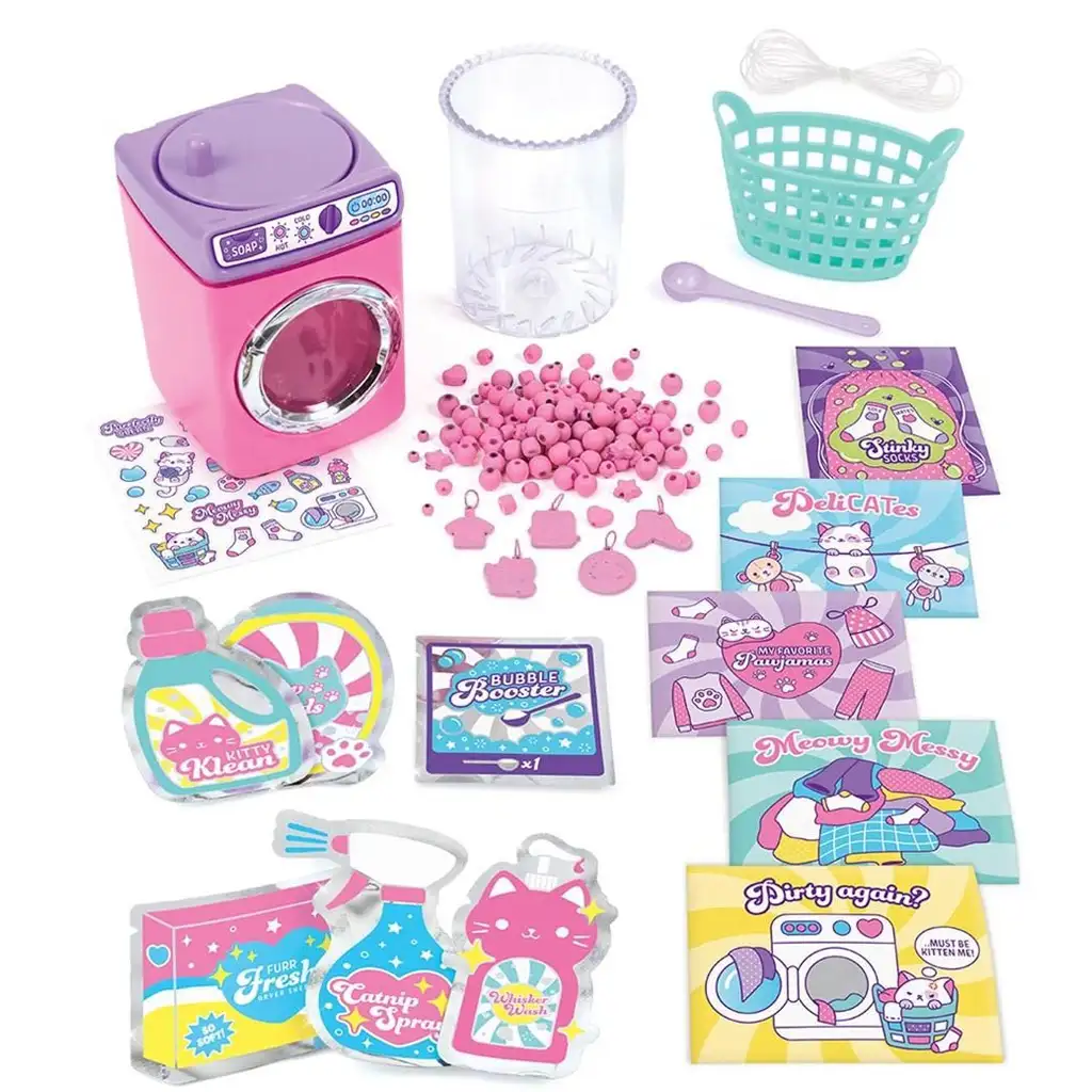 Ovládání korálkové pračky je velmi jednoduché a zábavné: stačí přidat vodu, nasypat korálky a spustit „praní“ pomocí malé kliky. Děti budou nadšené, když uvidí, jak se objevují pastelové barvy korálků a veselé vzorované přívěsky.
