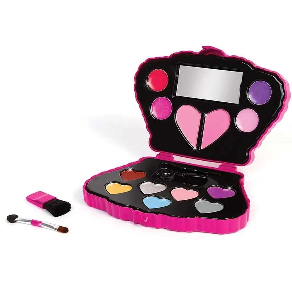 Sada obsahuje 17 dílů a najdete v ní vše, co malý módní nadšenec potřebuje k vytvoření krásného make-upu – ať už jde o oční stíny, rtěnku, tvářenku či trochu třpytivého prášku. Součástí jsou 7 krásných očních stínů ve tvaru srdce, 2 tvářenky, 3 odstíny lesku na rty, dále štětce a malé zrcátko, takže o zábavnou péči o krásu je hned postaráno!