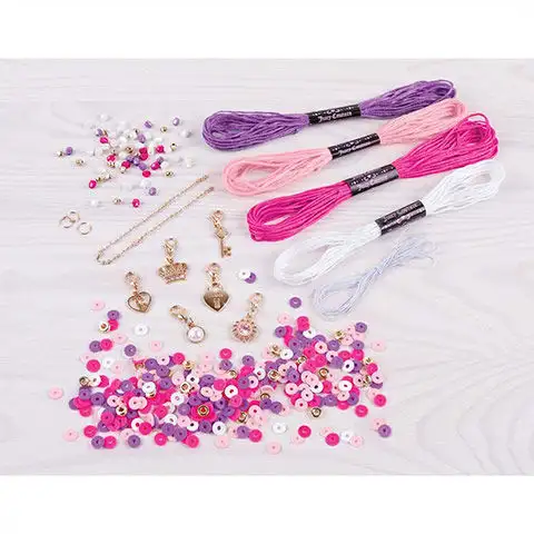 Každé malé dívce sluší šperky, zejména náramky, protože krásné barevné prvky zvýrazňují malé děti a cítí se výjimečně. S tímto setem mohou dívky uplatnit svou kreativitu, protože výroba šperků je skvělá kreativní hra. Juicy Couture přináší jedinečný styl mezi děti, protože na malé náramky lze zavěsit přívěsky a barevné korálky. Ze 372 prvků v sadě můžete vytvořit celkem 6 náramků, které můžete nosit při různých příležitostech.
