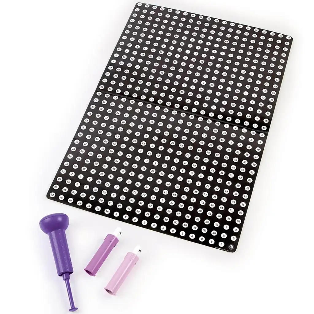 Pomocí číselného šablonového listu v krabici mohou děti krok za krokem následovat pokyny, takže jim pod rukama postupně vznikne nádherný tečkovaný plakát, který si mohou vystavit třeba na zeď do pokoje. Ergonomicky tvarovaný razítkovací nástroj je snadno použitelný i pro menší ruce.