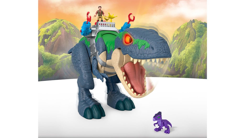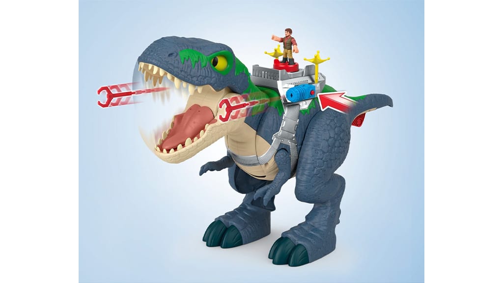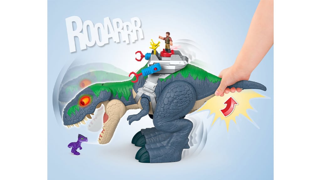 Děti si mohou s tímto obrovským T. rexem vymýšlet dobrodružství na téma dinosaurů. Tato hračka dává možnost, aby jejich fantazie volně létala, zatímco vymýšlejí a hrají vzrušující příběhy. Figurka vyrobená společností Mattel svým detailním zpracováním a působivou velikostí poskytuje skutečný zážitek pro každého fanouška dinosaurů.T. rex má dva herní režimy: může být použit v režimu mírném i útočném. Tyto režimy umožňují dětem prožít různé dobrodružství, ať už chtějí hrát přátelské nebo vzrušující, akční scény. V mírném režimu se T. rex chová klidně, zatímco v útočném režimu vystupuje jako děsivý predátor, což činí hru ještě zábavnější a pestřejší.
