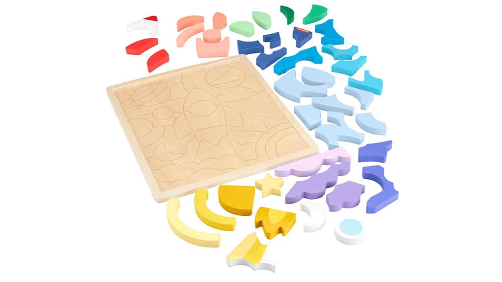 Většina skládaček je malá a má podobný tvar, což může být pro malé děti výzvou. Tato vesmírná sada odstraňuje zmatky při řešení skládaček díky jedinečným tvarům dílků, které jsou dostatečně velké pro malé ruce. Na rozdíl od klasických skládaček tato sada umožňuje volnou hru, kde si děti mohou skládat bloky na sebe nebo třídit dílky podle barev. Rodiče si také mohou užívat vzdělávací výhody, které děti z této skládačky získávají, včetně jemné motoriky, řešení problémů a koordinace ruky a oka.