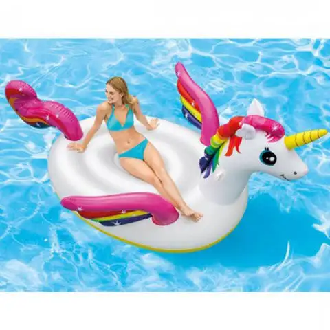 Obrovský, opravdu působivý nafukovací jednorožec může hru a odpočinek ve vodě udělat ještě zajímavějším, který bude z dálky snadno rozpoznatelný. Obrovský nafukovací jednorožec má velkou lehací plochu, na které si můžete užívat vlny, zároveň poskytuje prostor pro zábavnou hru. S nafukovacím jednorožcem bude vodní plážová hra ještě zábavnější! Stačí začít pumpovat vzduch dovnitř a hned se objeví jeho křídla, ocas a také pestrobarevná hlava jednorožce!