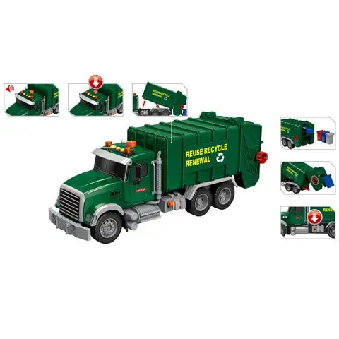 Chcete upoutat pozornost svého dítěte na třídění odpadu? Překvapte ho tímto nákladním autem, které přepravuje tříděný odpad. Díky detailnímu provedení vypadá jako skutečný nákladní vůz a navíc je vybaveno pohyblivými částmi, takže část pro zvedání kontejnerů může být zvednuta podobně jako sklopná část kontejneru. Na střeše nákladního auta se nacházejí tlačítka, kterými lze aktivovat zvukové a světelné efekty, čímž se zážitek z hry stane úplným.