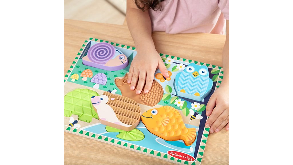Objevování různých textur přináší vzrušující zážitek, zatímco se rozvíjejí jemné motorické dovednosti dětí. Hračku vytvořila značka Melissa & Doug, která je po celém světě známá svými kvalitními a rozvíjejícími hračkami.